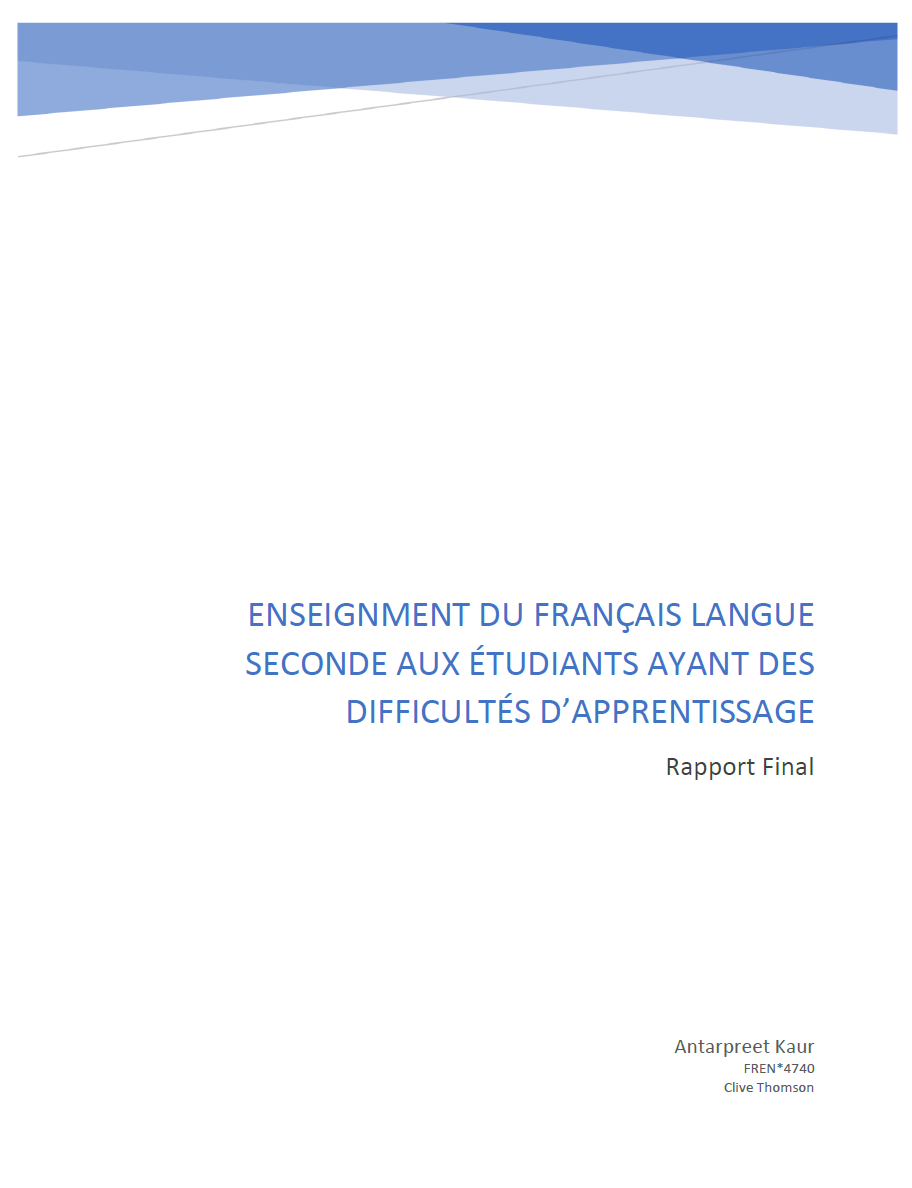 ENSEIGNMENT DU FRANÇAIS LANGUE SECONDE AUX ÉTUDIANTS AYANT DES DIFFICULTÉS D’APPRENTISSAGE (2019)