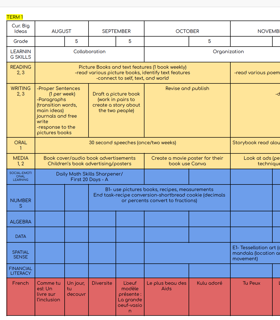 Grade 5 Long Range Plan